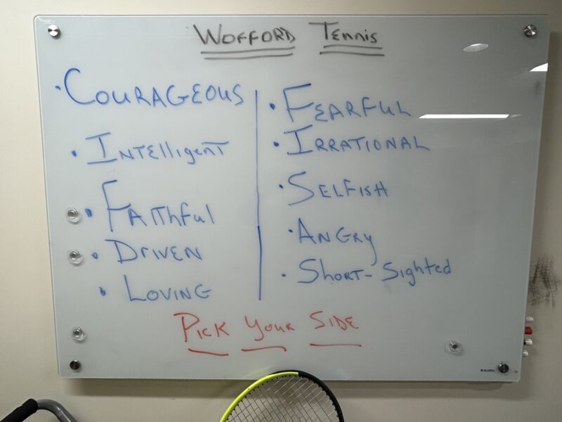 Mark was flat on his back in the middle of the court. He had triumphed with a good win that morning and fifteen minutes earlier he had just taken the court with a strong player from Wake Forest. Now, he had no pulse or breath. He was dead. The defibrillator’s electronic voice echoed “No pulse, continue shocking.” “This isn’t happening,” I thought to myself. The air was still and uncomfortable. I felt responsible. Three strong young men took turns, attacking chest
